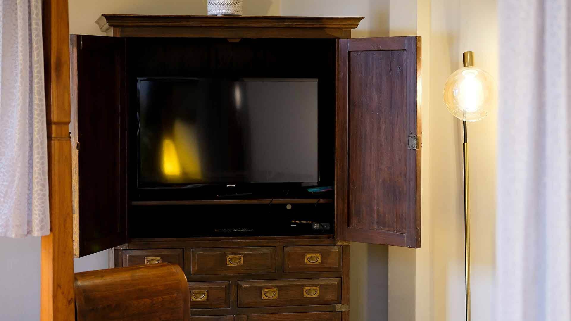A large flat-screen TV with streaming services.